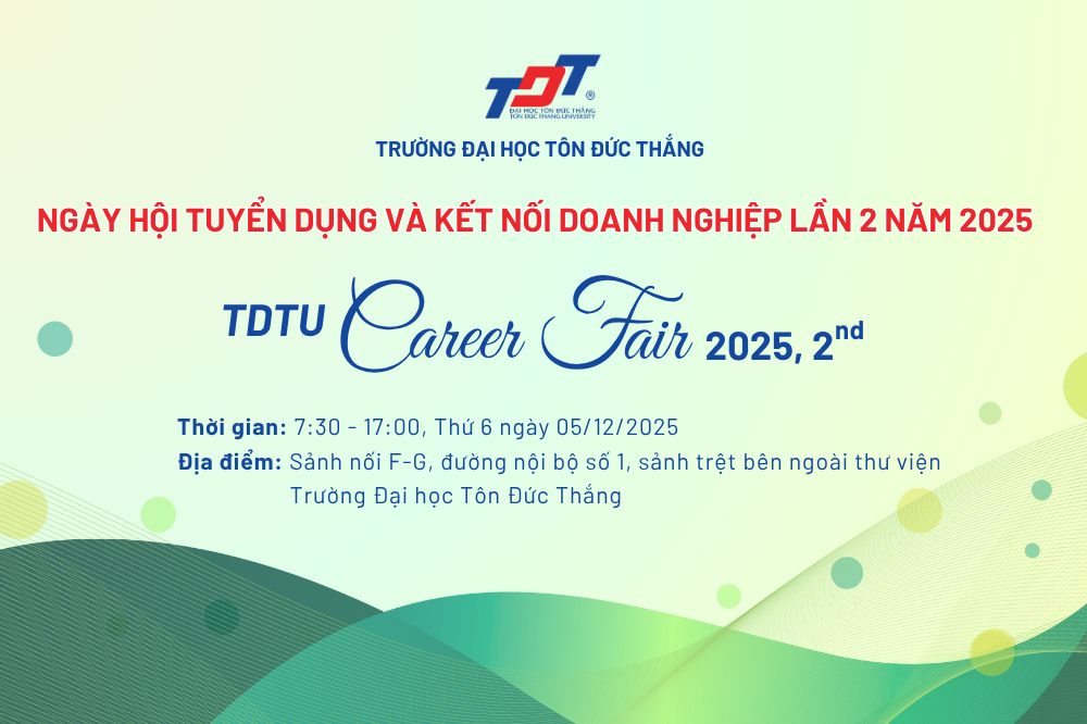 Trang chủ Tin tức - sự kiện Ngày hội tuyển dụng và kết nối doanh nghiệp Trường Đại học Tôn Đức Thắng lần 2 năm 2025 Tin tức - Sự kiện , 27 Th8 25 Hành trình cống hiến, ghi dấu ấn tuổi trẻ TDTU tại quê hương Bác Tôn Tin tức - Sự kiện , 08 Th8 25 Xem thêm >> Việc làm và kết nối cựu sinh viên Đăng ký tham gia Sự kiện T12 05 Ngày hội tuyển dụng và kết nối doanh nghiệp Trường Đại học Tôn Đức Thắng lần 2 năm 2025 T09 20 Hoạt động kết nối Cựu sinh viên chào mừng 28 năm Ngày thành lập Trường Đại học Tôn Đức Thắng T06 28 Ngày hội kết nối cựu sinh viên năm 2025 Việc làm - Thực tập Công ty TNHH Đại lý Thuế Tấn Ngọc tuyển dụng Kế toán dịch vụ ZIM Academy tuyển dụng Giáo viên IELTS/TOEIC/SAT và Cộng tác viên học thuật ZIM Academy tuyển dụng Cố vấn học tập Công ty Cổ phần VINASOL (VINASOL) tuyển dụng Nhân viên hồ sơ dự án và Nhân viên kinh doanh Công ty Cổ phần VINASOL (VINASOL) tuyển dụng Kỹ sư điện và Kỹ thuật thi công Công ty TNHH KPM Auditing & Advisory tuyển dụng Thực tập sinh Công ty TNHH TM TVĐT&XD Nam Anh tuyển dụng Kỹ sư tư vấn thiết kế Công ty ECU Worldwide Vietnam tuyển dụng. Nhân viên Bán hàng FCL & Chăm sóc khách hàng (Giao nhận vận tải) Công ty TNHH Leschaco Việt Nam (Leschaco) tuyển dụng Kế toán công nợ Xem thêm >> Cựu sinh viên tiêu biểu Cựu sinh viên Tổng kết hoạt động kết nối cựu sinh viên chào mừng 28 năm Ngày thành lập Trường Đại học Tôn Đức Thắng Cựu sinh viên Trường Đại học Tôn Đức Thắng tổ chức Ngày hội kết nối cựu sinh viên năm 2025 Cựu sinh viên “TDTU: 27 năm – Ngày hội Cựu sinh viên” – Hướng tới kỷ niệm Ngày thành lập Trường năm 2024 Cựu sinh viên “TDTU: 27 năm –Ngày hội cựu sinh viên” Kết nối cộng đồng cựu sinh viên năm 2024 Cựu sinh viên Ngày hội doanh nghiệp Cựu sinh viên năm 2024 Cựu sinh viên Ngày hội doanh nghiệp cựu sinh viên Trường Đại học Tôn Đức Thắng năm 2024 Cựu sinh viên Trung tâm Hợp tác doanh nghiệp và cựu sinh viên tổ chức giải bóng đá giao hữu nhân dịp kỷ niệm 41 năm Ngày Nhà giáo Việt Nam 20/11/2023 Cựu sinh viên Trung tâm hợp tác doanh nghiệp và cựu sinh viên Trường Đại học Tôn Đức Thắng tổ chức buổi chia sẻ chủ đề “Chinh phục nhà tuyển dụng” Hoạt động kết nối doanh nghiệp TDTU ký kết hợp tác với Công ty Cổ phần Y tế Phúc Thịnh Trường Đại học Tôn Đức Thắng ký kết hợp tác với Báo Tuổi Trẻ Trường Đại học Tôn Đức Thắng ký kết hợp tác với Tập đoàn TTC Lễ ký kết thoả thuận hợp tác giữa Trường Đại học Tôn Đức Thắng (TDTU) với Hiệp hội tái chế chất thải Việt Nam Trường Đại học Tôn Đức Thắng ký kết hợp tác với Ngân hàng TMCP Đại chúng Việt Nam (PVcomBank) Ký kết thỏa thuận hợp tác với BIDV chi nhánh Kỳ Hòa Ký kết thỏa thuận hợp tác với BIDV chi nhánh Kỳ Hòa LỄ KÍ KẾT THỎA THUẬN HỢP TÁC VÀ BIÊN BẢN XÁC NHẬN TÀI TRỢ CHO GIÁO DỤC GIỮA KHOA MỸ THUẬT CÔNG NGHIỆP VÀ CÔNG TY MEMETOON ENTERTAINMENT (HÀN QUỐC) Trường Đại học Tôn Đức Thắng ký kết mở rộng hợp tác song phương với Trường Đại học Quốc gia Chungbuk, Hàn Quốc Trường Đại học Tôn Đức Thắng tiếp và làm việc với Đoàn Trường Đại học Quốc gia Thanh Hoa, Đài Loan